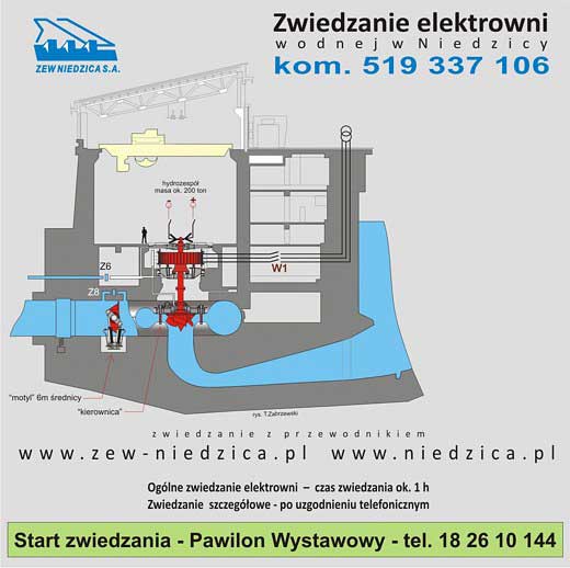 Dostępne do zwiedzania z przewodnikiem są pomieszczenia technologiczne elektrowni wraz z urządzeniami do produkcji prądu, a także podziemy tunel
